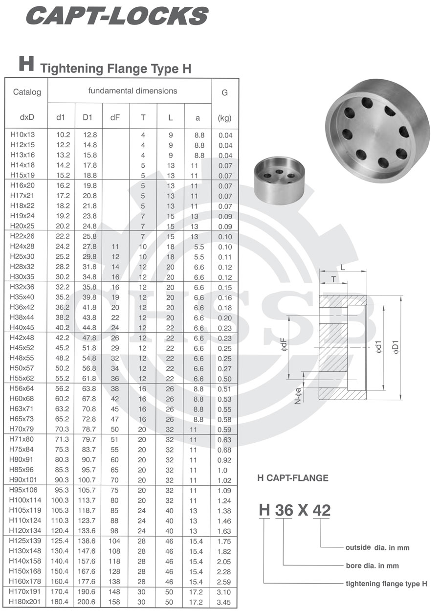 Range of product: ANSI/DIN:(H) Inch size product (Apply to ANSI market) Metric size product (Apply to DIN market) H Type Tightening Flange