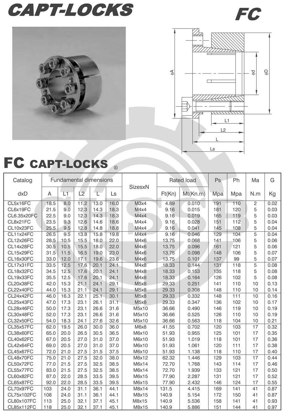 Range of product: DIN:(FC) Metric size product (Apply to DIN market) FC Type CAPT-LOCKS