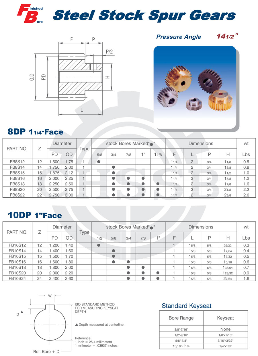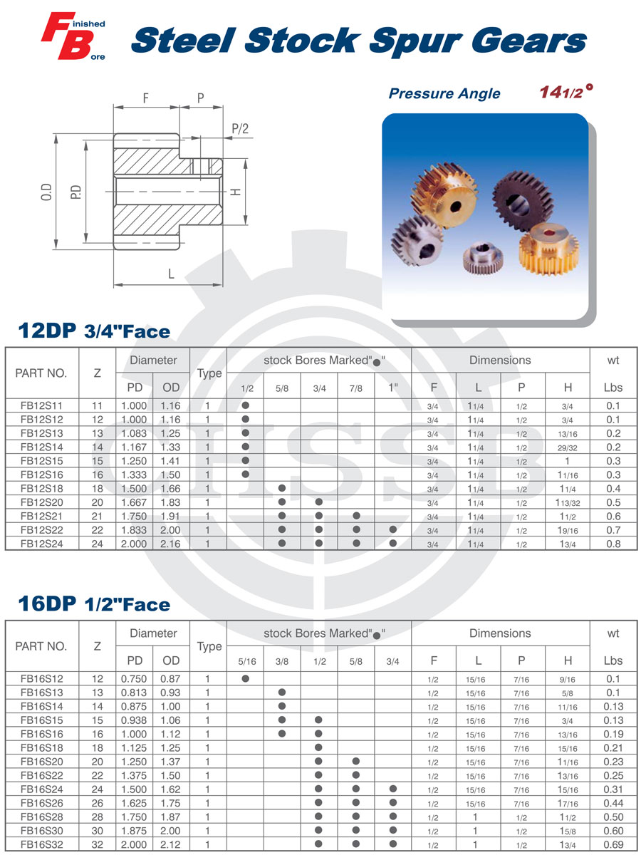 Range of product: ANSI:?(14 1/2° 8DP/10DP/12DP/16DP) Inch size product (Apply to ANSI market) FB Steel Spur Gears