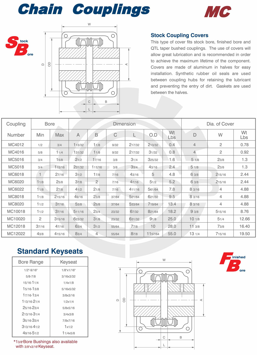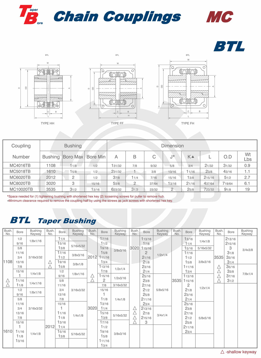Range of product: ANSI:(SB-KC/FB-KC/FB-MC/BTL-MC/QTL-MC/FB-BC/STL-BC) DIN:(KC) Inch size product (Apply to ANSI market) Metric size product (Apply to DIN market) KC Chain Couplings